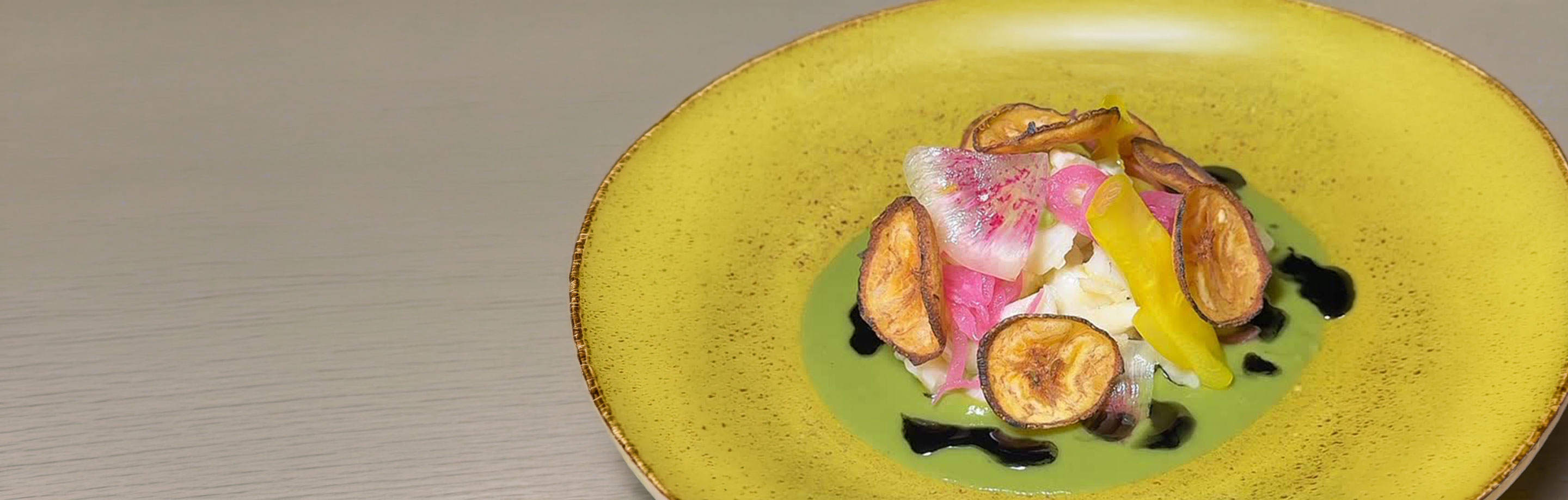 heirloom tortilla, tom kha, trinity herb salad, ceviche infladita, avocado espuma