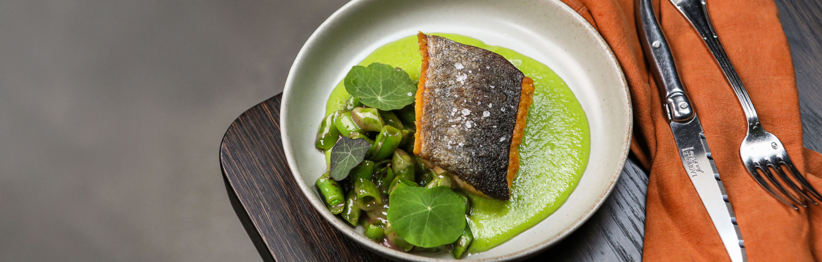 braised cabbage, grilled apples, sunchoke beurre blanc, dill, almond
